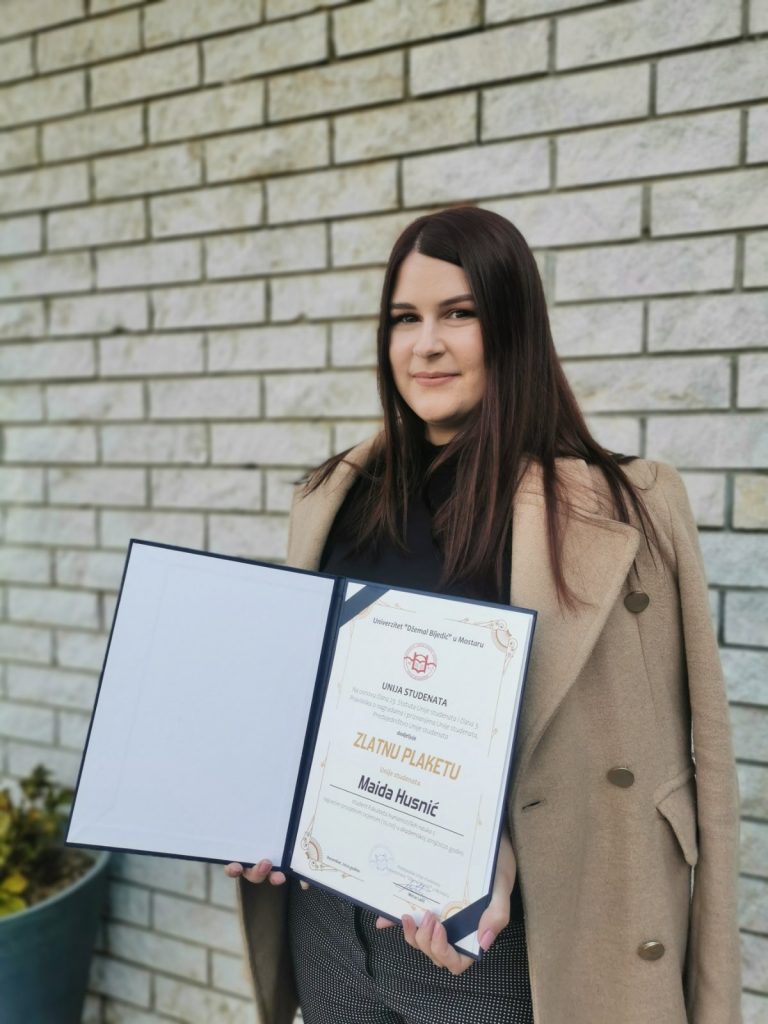 Dekanova nagrada za izvrstan uspjeh u prethodnoj akademskoj godini pripala je i našoj stipendistkinji Nedžmi Salkić, kao jednoj od najboljih studentica Ekonomskog fakulteta Univerziteta u Zenici.